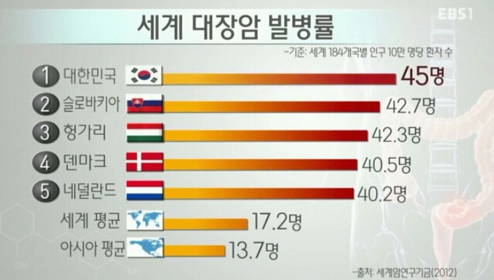 전세계에서 대장암 발생률은 한국인이 가장 높으며 한국인이 걸리는 암중 위암 다음 2번재로 발생률이 높은 암입니다. 특히 대장암 초기증상이 없이 찾아오는 경우가 있어 더욱 무서운 암입니다. 그럼 오늘은 대장암 초기증상 , 수술방법 , 대장암 생존율 등 다양한 증상에 대해 알려드리겠습니다.