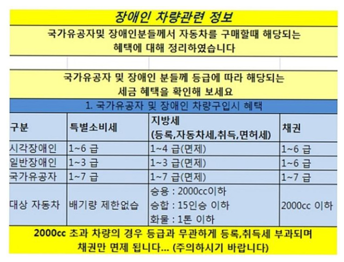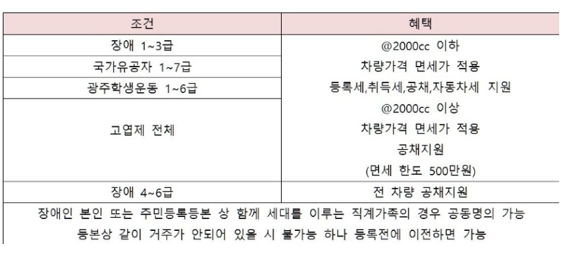 장애인 차량구입시 혜택 조건
