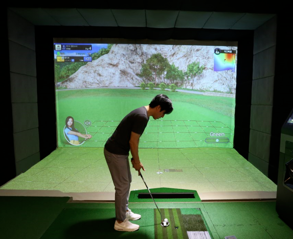 벙커 매트가 길고 억세서 저항이 심하기 때문에 팔 힘이 약한 사람들은 하체를 이용해 스윙을 해주면 벙커 매트의 저항을 쉽게 이길 수 있습니다. 스크린 골프장을 이용하면 필드를 이용하는 것에 비해 비용이 저렴하다는 것을 느낄 수 있을텐데요.