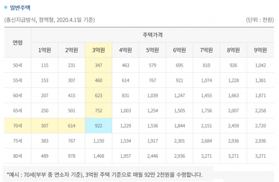 가입 연령, 주택가격에 따라 다른 수령액