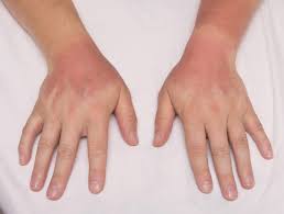 2)손가락, 발가락, 손목 등 여러 관절이 양측으로 붓고 아프다고 한다. 특히